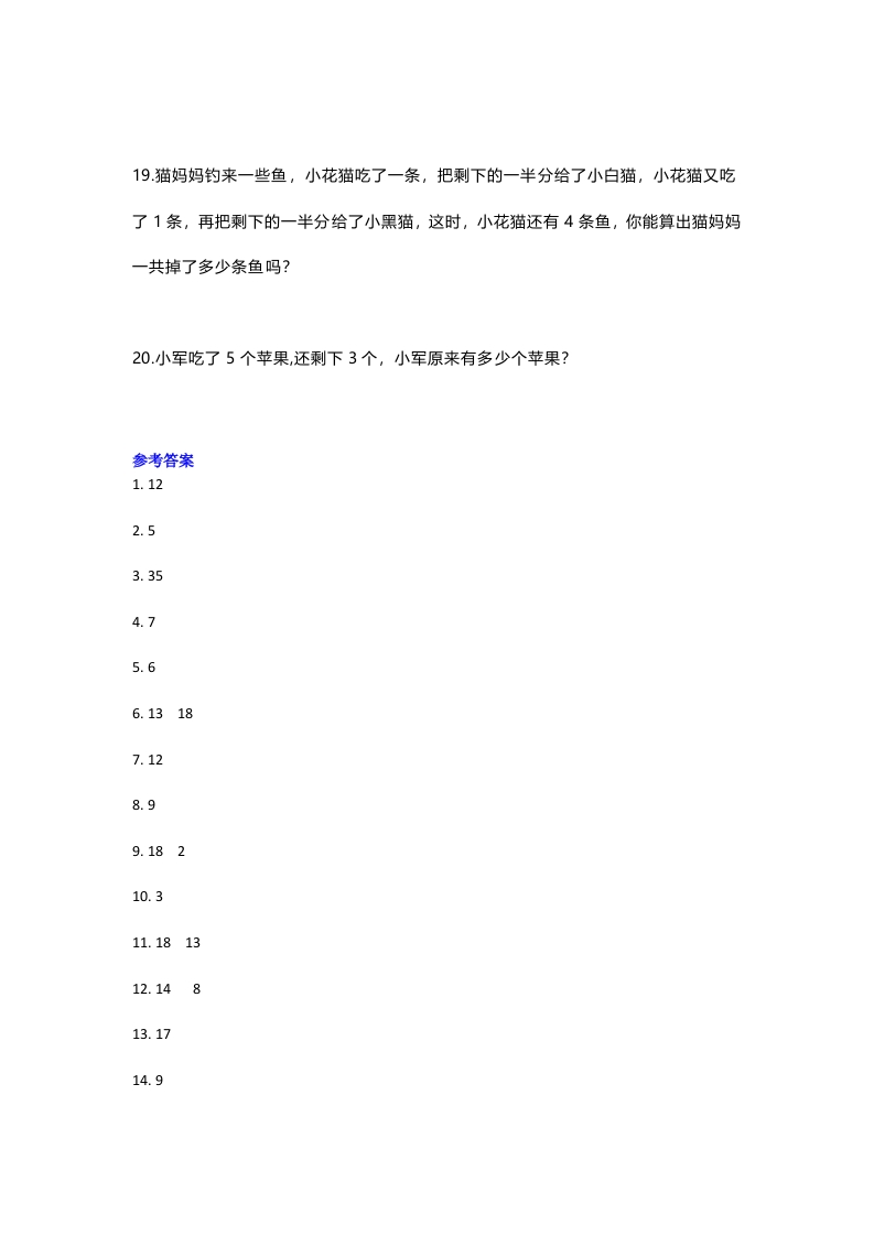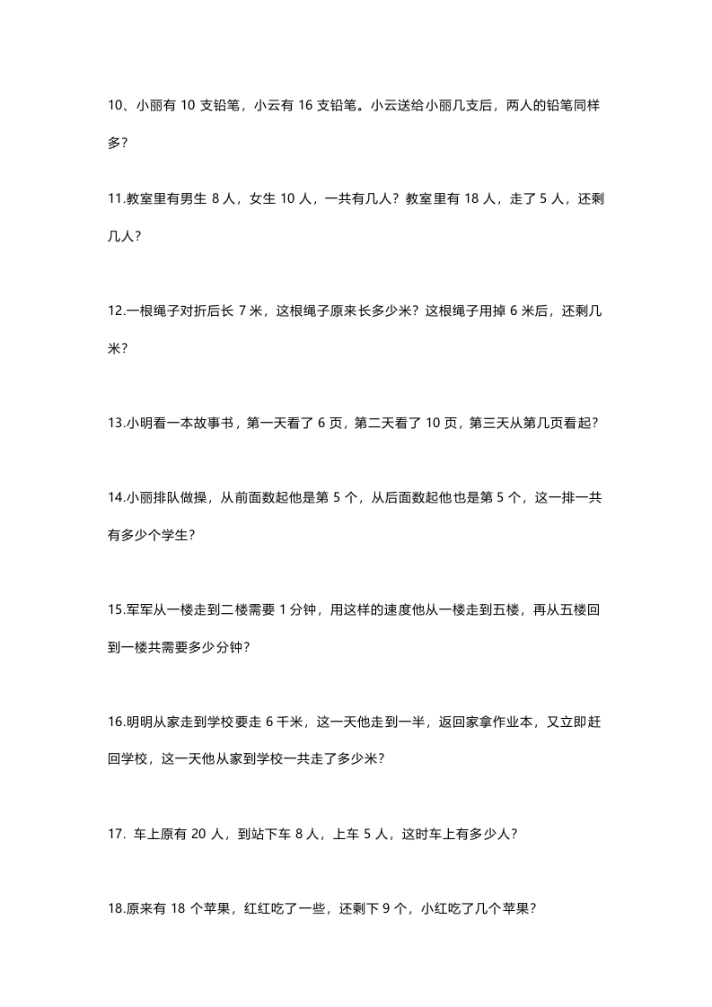 小学一年级数学暑假应用题专项练习及答案此内容为付费资源,请付费后查看