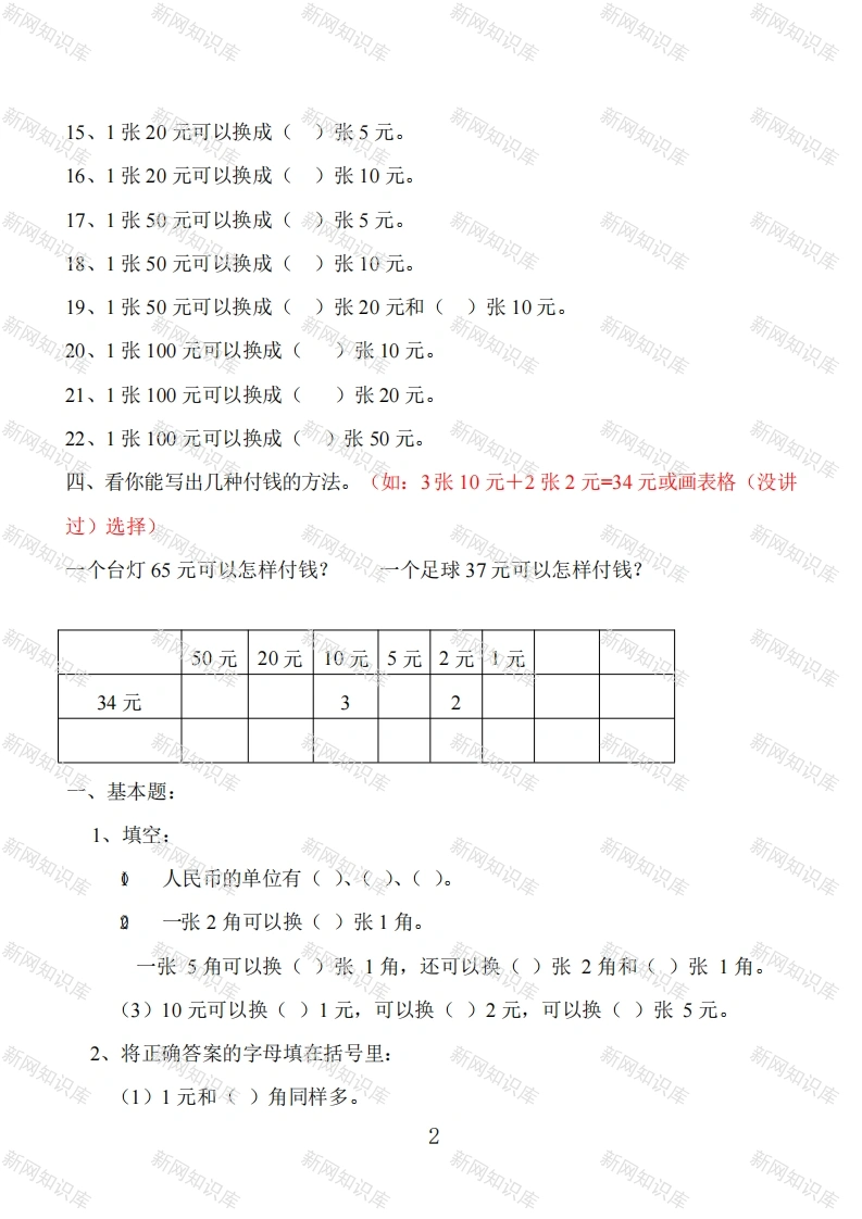 小学数学一年级上册-人民币专项训练此内容为付费资源,请付费后查看