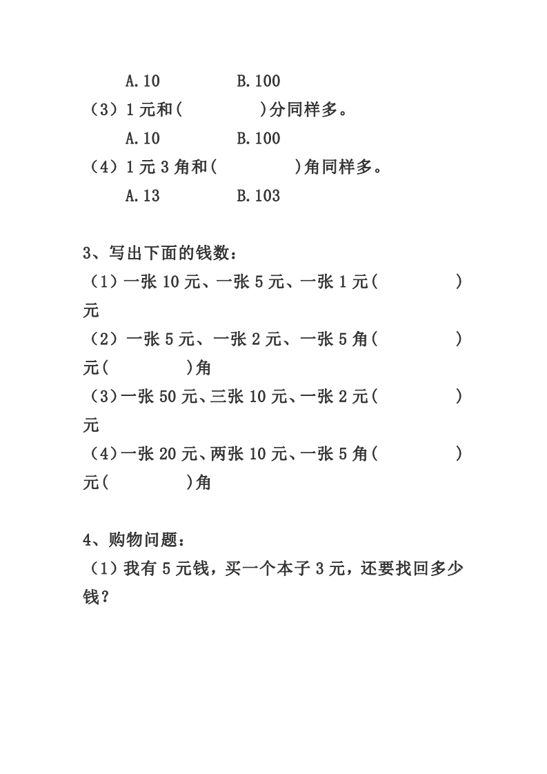 小学数学一年级上册-人民币换算知识点及练习题此内容为付费资源,请付费后查看