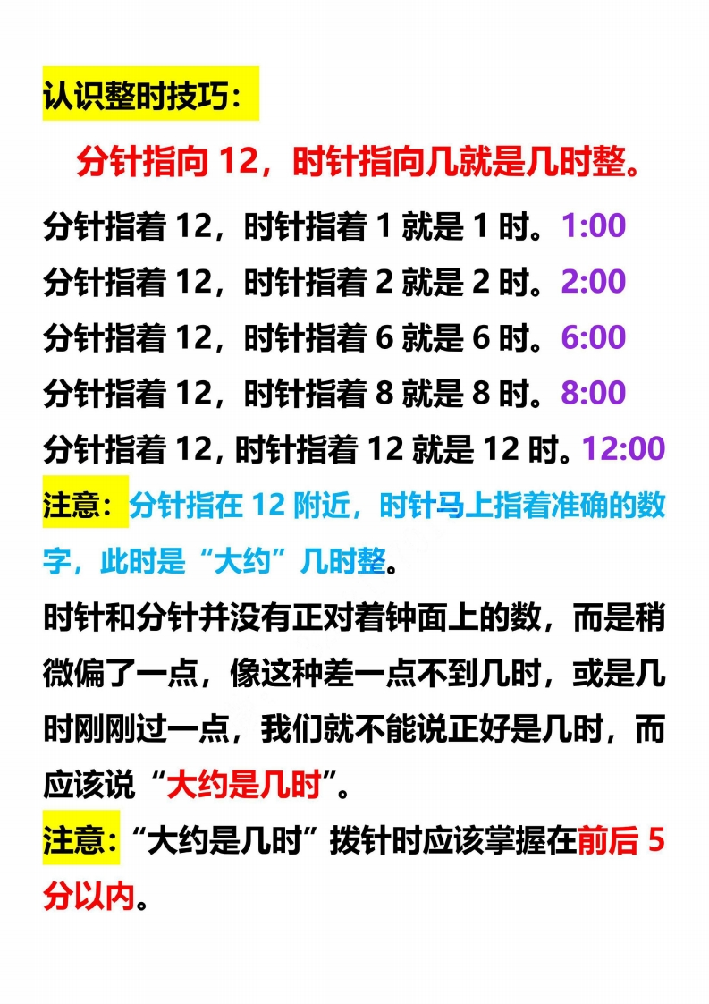 小学数学一年级上册-钟表图及知识(2)xmtt884个月前发布关注私信0.91MB2页04910 第1页 / 共2页 第2页 / 共2页 已完成全部阅读,共2页 小学数学一年级上册-钟表图及知识(2)此内容为付费资源,请付费后查看¥1¥2会员服务免费立即购买您当前未登录!建议登陆后购买,可保存购买订单付费资源© 版权声明文章版权归作者所有,未经允许请勿转载。THE END数学 文本预览 钟表的认识分针细长时针粗短认识时针、分针1时=60分以上钟面又细又长的针叫分针又短又粗的针叫时针时针走一格是1小时走一圈是12个小时:分针走一圈是1小时。 查看更多 收起部分 喜欢就支持一下吧点赞10 分享QQ空间微博QQ好友海报分享复制链接收藏