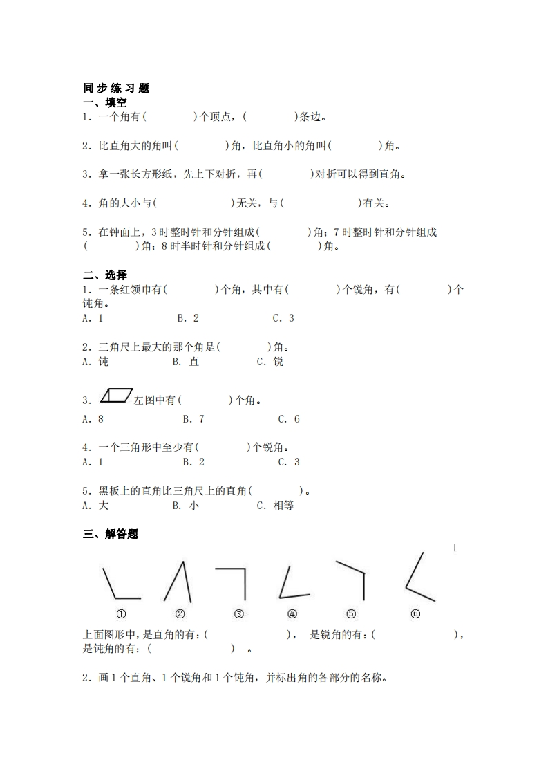 2年级数学上册《角的初步认识》知识点此内容为付费资源,请付费后查看