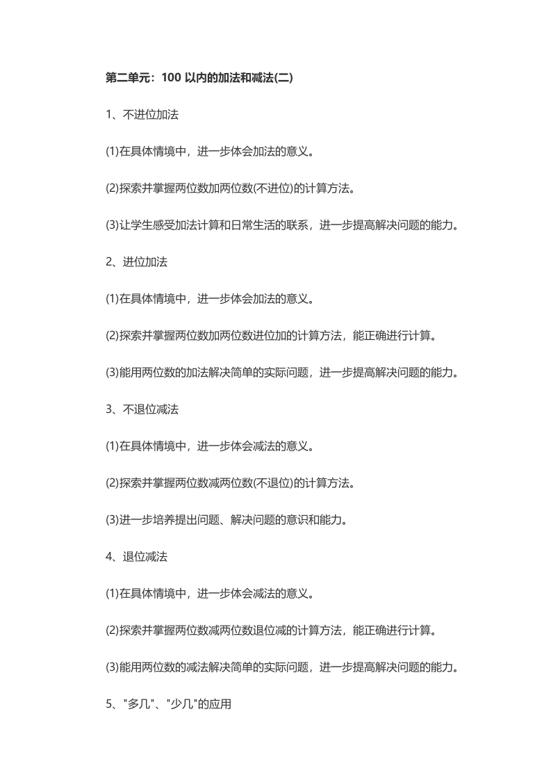数学二年级上册重要知识点第一单元:长度单位1、第1--3页(1)经历用不同工具测量同一物体长度的过程,体会统一长度单位的必要性。(2)能用给定的"工具"进行估计和测量。(3)认识厘米,体会厘米的实际意义。(4)能用厘米估计较小物体的长度,会用刻度尺测量较小物体的长度。2、第4-5页()认识米,体会米的实际意义,能用米估计较长物体的长度。(2)掌握米和厘米之间的关系,能恰当选择单位表示物体的长度。(3)认识米尺,会用米尺测量物体的长度。(4)初步认识线段,能辨别,能测量线段的长度,能画定长的线段