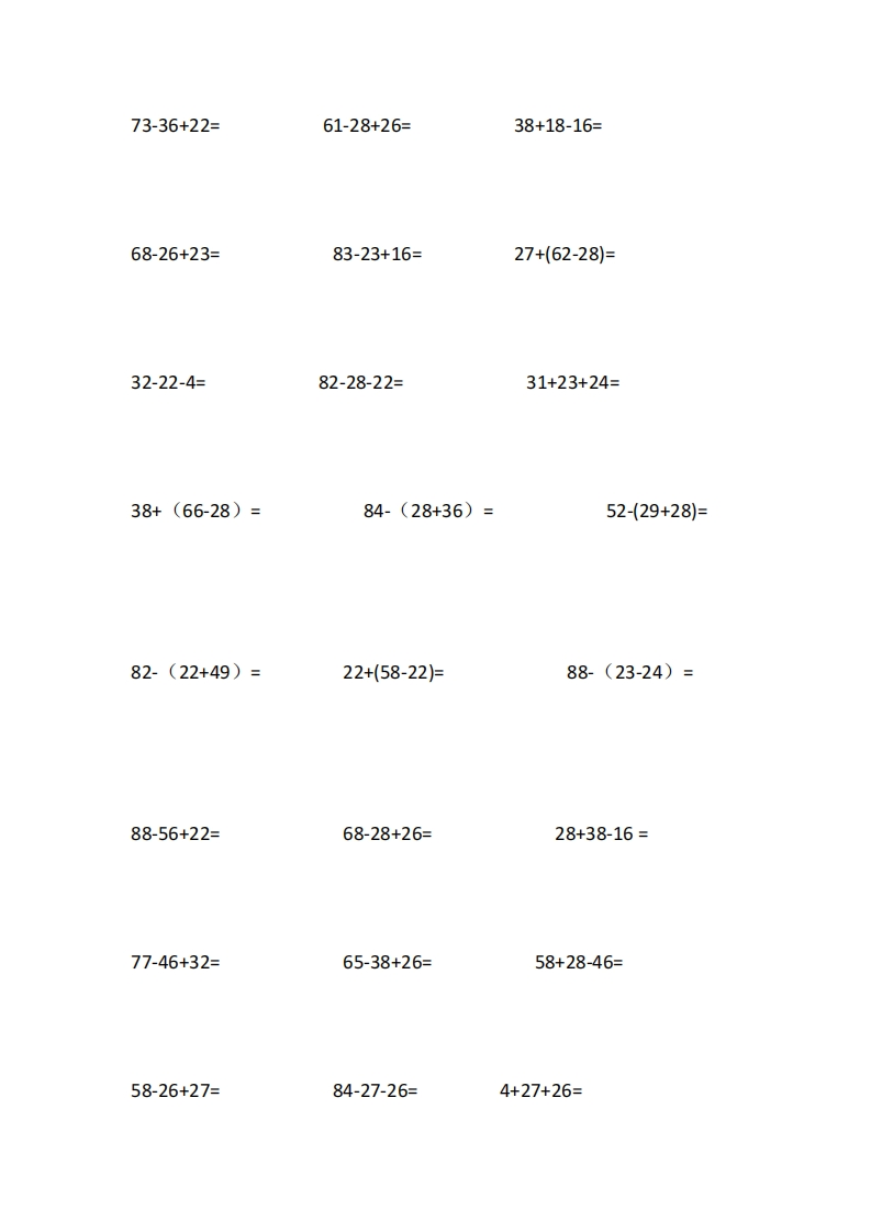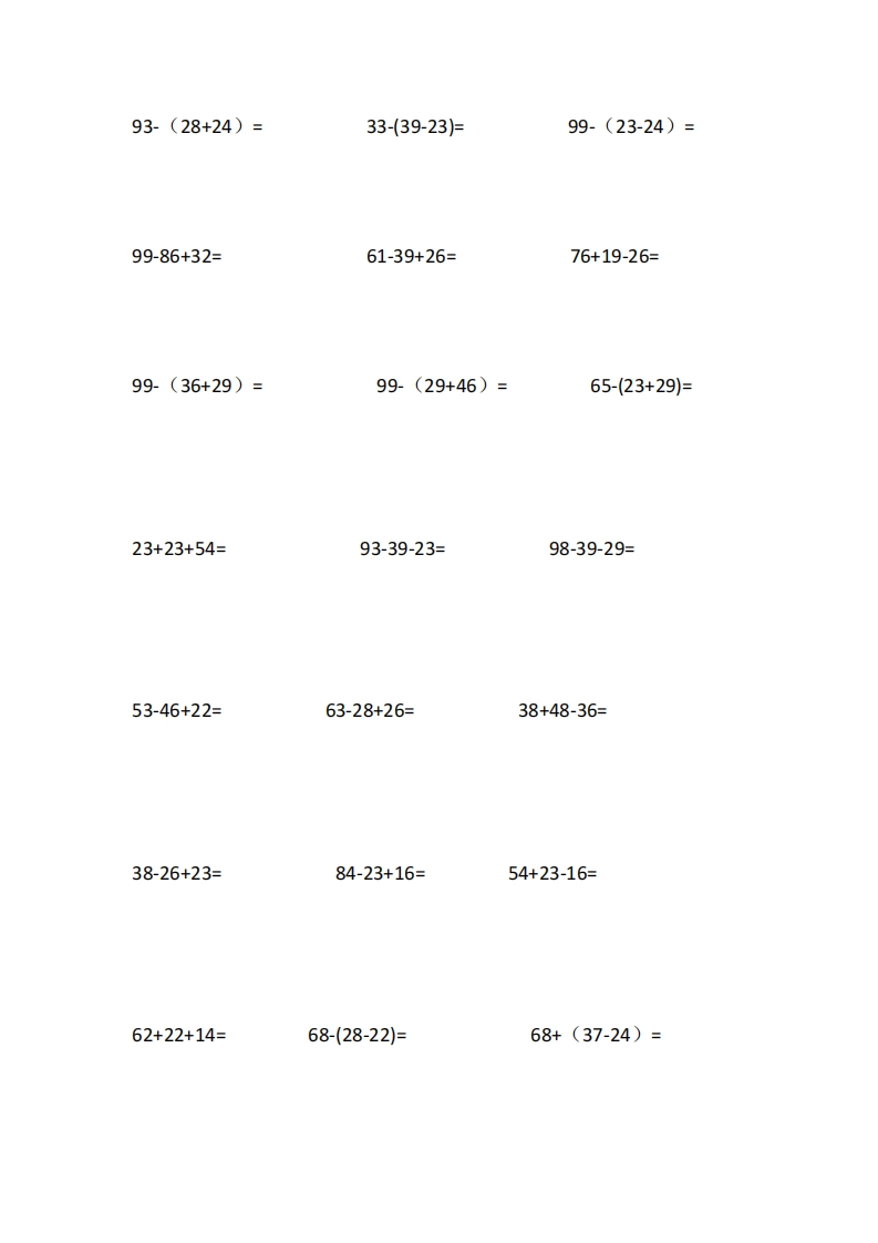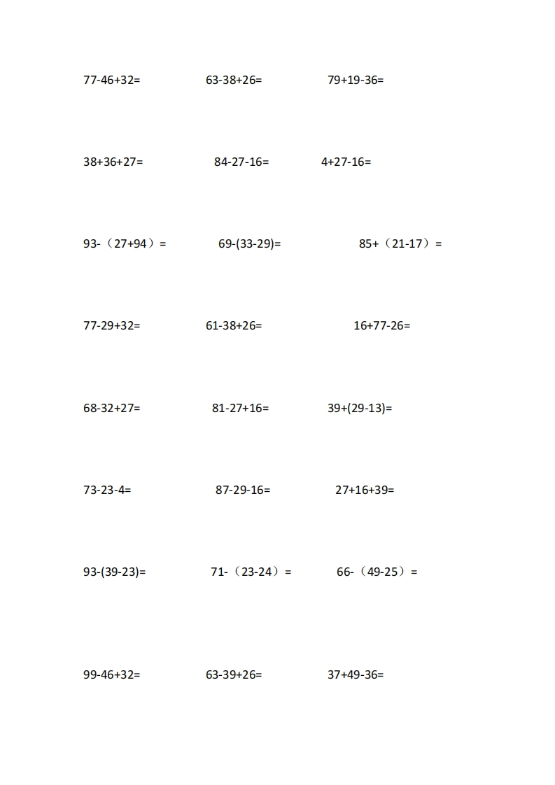 77-46+32=63-38+26=79+19-36=38+36+27=84-27-16=4+27-16=93-(27+94)=69-(33-29)=85+(21-17)=77-29+32=61-38+26=16+77-26=68-32+27=81-27+16=39+(29-13)=73-23-4=87-29-16=27+16+39=93-(39-23)=71-(23-24)=66-(49-25)=99-46+32=63-39+26=37+49-36=
