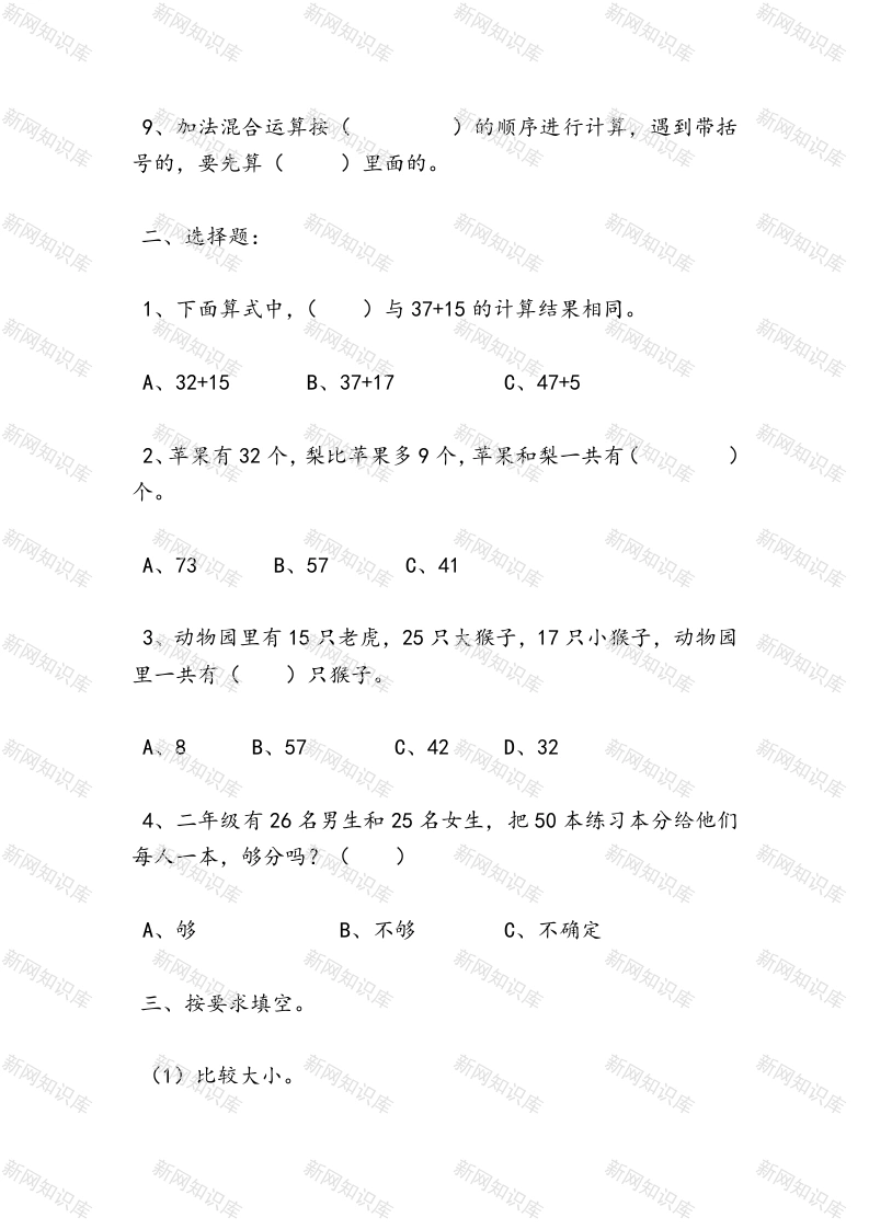 人教版2018新二年级上册数学第二单元测试题此内容为付费资源,请付费后查看