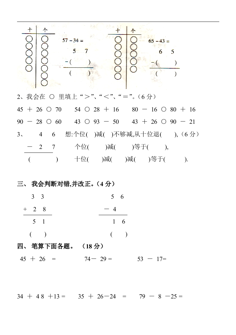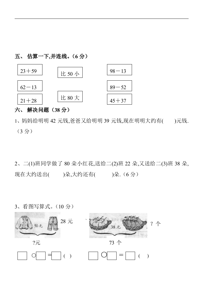 新人教版小学数学二年级上册第2单元《100以内的加法和减法二》试卷3此内容为付费资源,请付费后查看