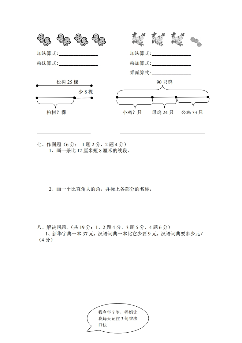 密卷人教版二年级数学上册期中测试卷及参考答案此内容为付费资源,请付费后查看