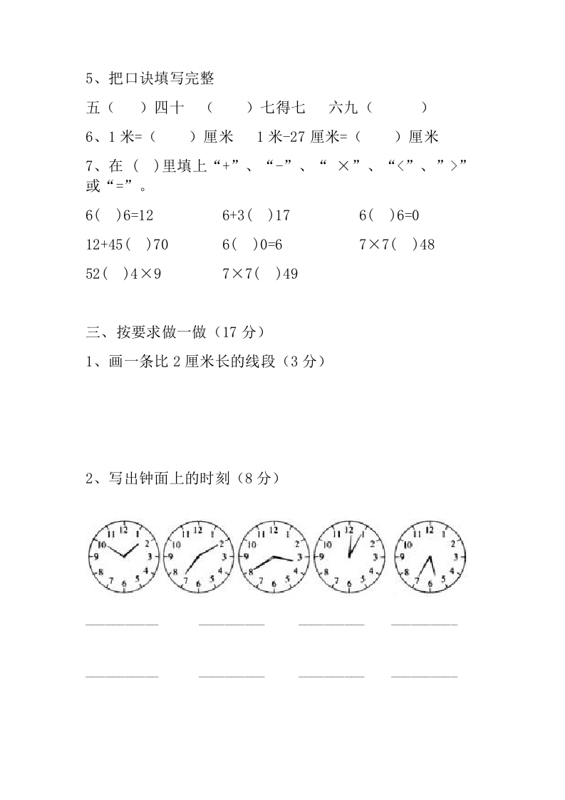 人教版小学数学二年级上册期末试卷8此内容为付费资源,请付费后查看