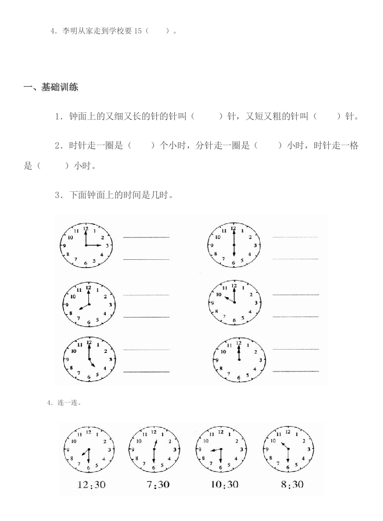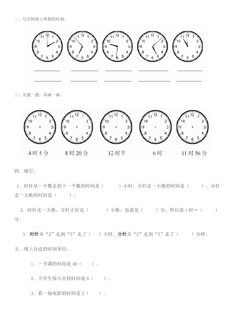 二年级上册数学《认识钟表》试题此内容为付费资源,请付费后查看
