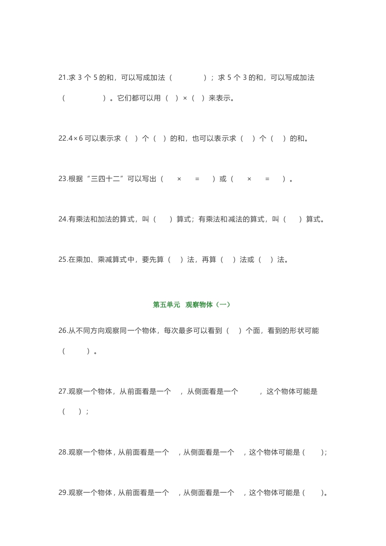 小学二年级上册数学填空题汇总此内容为付费资源,请付费后查看