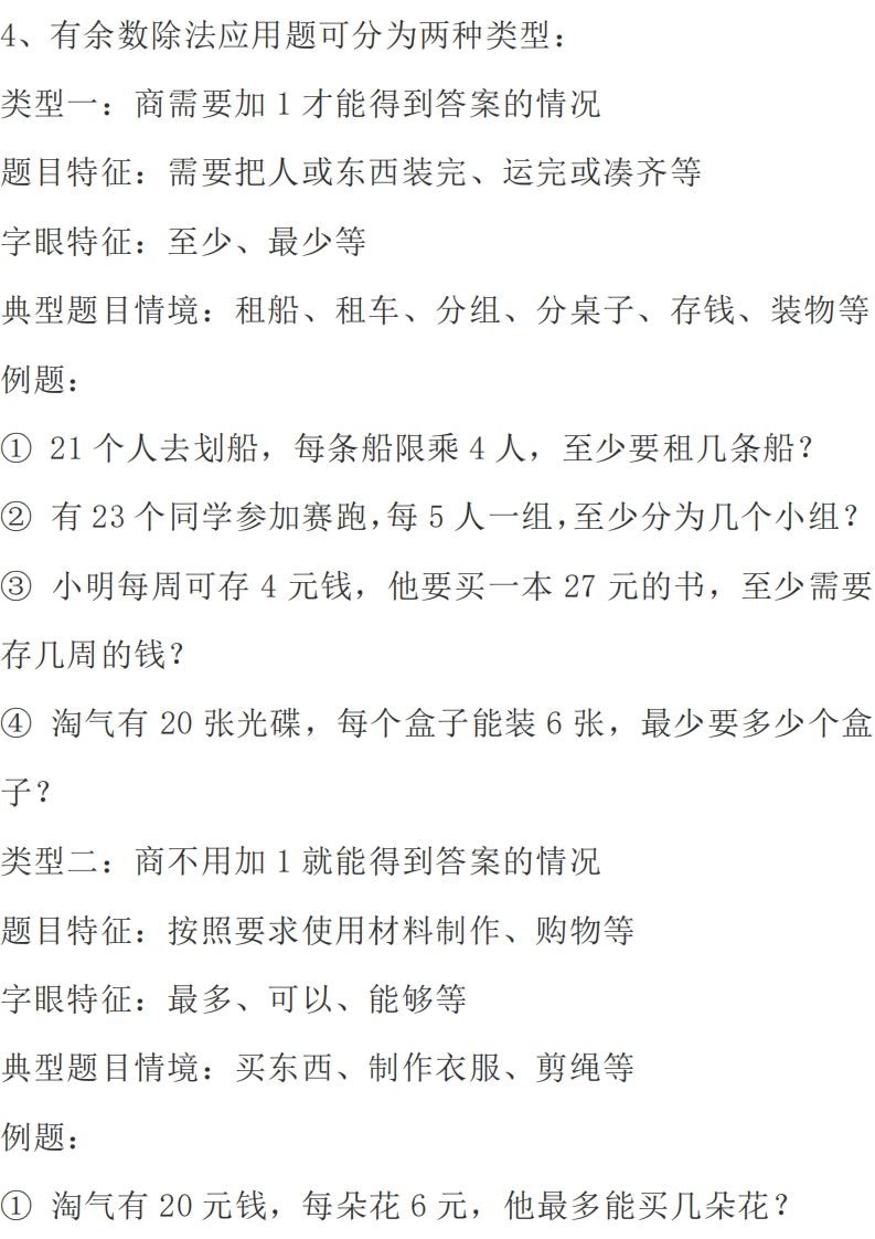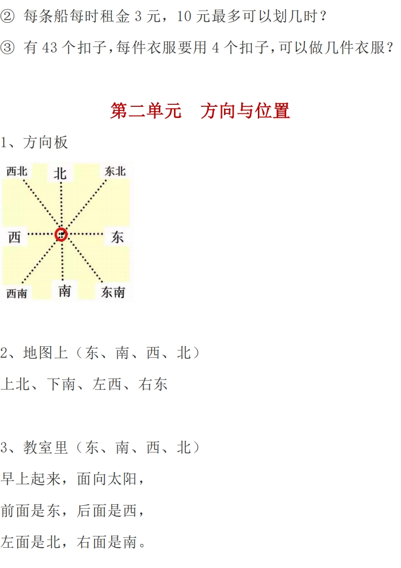 北师大版数学二年级下册期中知识点复习汇总xmtt884个月前发布关注私信0.20MB7页04510 第1页 / 共7页 第2页 / 共7页 第3页 / 共7页 试读已结束,还剩4页,您可下载完整版后进行离线阅读 北师大版数学二年级下册期中知识点复习汇总此内容为付费资源,请付费后查看¥1¥2会员服务免费立即购买您当前未登录!建议登陆后购买,可保存购买订单付费资源© 版权声明文章版权归作者所有,未经允许请勿转载。THE END二年级下数学 文本预览 第一单元除法1、横式325=6…2被除除商余除号数数数2、竖式除号:商…6除数5/32…被除数30…除数和商的积等号2…余数3、注意①余数和除数的关系:除数>余数②验算方法:除数×商+余数=被除数③试商方法:利用乘法口诀,两数相乘的积最接近被除数,而又比被除数小。 查看更多 收起部分 喜欢就支持一下吧点赞10 分享QQ空间微博QQ好友海报分享复制链接收藏