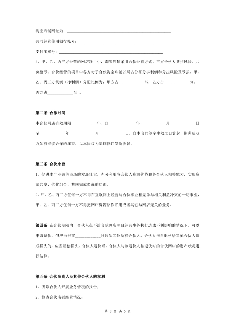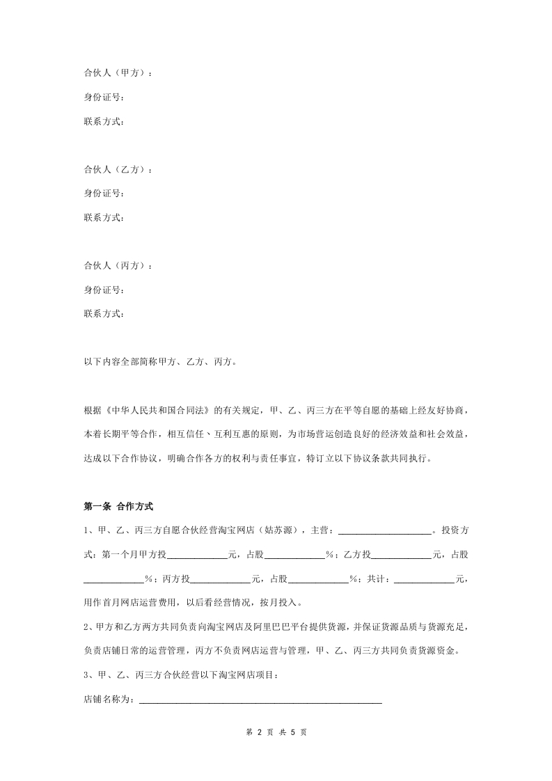 淘宝店铺合伙经营合同协议范本模板三方xmtt885个月前发布关注私信28KB5页05512 第1页 / 共5页 第2页 / 共5页 第3页 / 共5页 试读已结束,还剩2页,您可下载完整版后进行离线阅读 淘宝店铺合伙经营合同协议范本模板三方此内容为付费资源,请付费后查看¥1¥2会员服务免费立即购买您当前未登录!建议登陆后购买,可保存购买订单付费资源© 版权声明文章版权归作者所有,未经允许请勿转载。THE END创业合伙协议 喜欢就支持一下吧点赞12 分享QQ空间微博QQ好友海报分享复制链接收藏