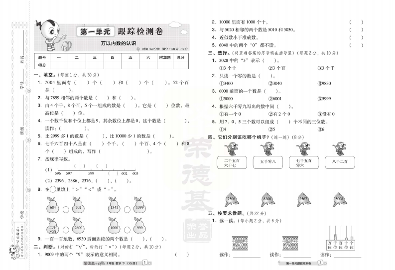 《好卷》=《大卷》+《小卷》:不是所有的试卷都叫“好卷”期末提分才是硬道理计散单位的认识.含的散的写散散。号散,续数01大小比校.较大数的估计。认欲算盘…0阳三位教的连绿进位加法和通位减法的千米。嘉米的认识和简单的单位撩算…防计算及应用…21小卷周整十、整百散的加减、。三位教的加法…07有余教的除法计算及应用三位教的减法、根索规律和问艷解决…阴长方形、正方形的特征和平行)边形的小卷专项能时、分、秒的换算及经过时网的计鳄方法…25优卷认识常考黑错题认识阵法算式和有余敢致的院话…13时。分、秒和阀题解决4411…痛空跑…2刘分类、整理数据,认识图形,统计影和统提升卷选择龅…3计表……17计算题(一)…3计算题(二)同步测评用…35圆形题…37应用影(二)…4第一单元眼踪检测卷单元第二单元服监检测卷教马代款统计…29第三单元服棕检测卷期末冲刺用块过关卷图形与几何…3衫翻中跟尊检测卷…13大卷测卷第四单元露腺检测卷17第五单元酸踪检测卷大卷第六,七单元跟踪检测春真模卷仿离摸拟卷(二)4利大卷菩案见大粒49-60页小卷蓝案见小卷43-46页
