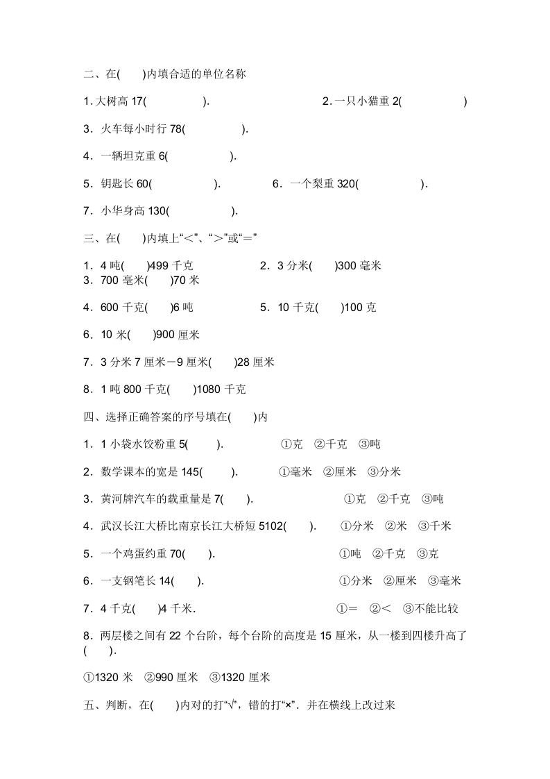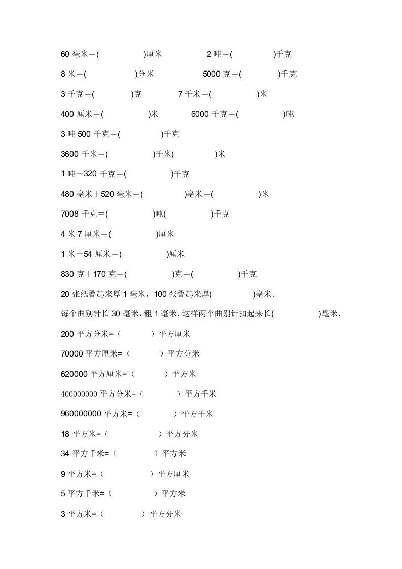 小学三年级数学上册单位换算专项练习此内容为付费资源,请付费后查看