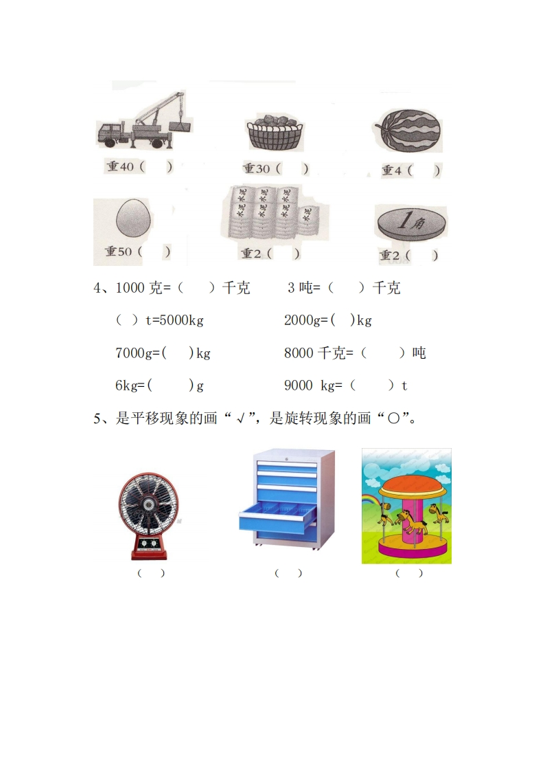 小学三年级数学上册期中测试题时限(70分钟)班级姓名题号二三四五六总分得分一、我会填。(17分)1、表示较轻物品的质量,通常用()作单位,可以用()表示;表示较重物品的质量,通常用(作单位,可以用()表示;计量很重的物品或大宗物品的质量,通常用吨作单位,可以用()表示。2、地图通常是按上(),下(),左(),右()绘制的。3、在()填上合适的单位。
