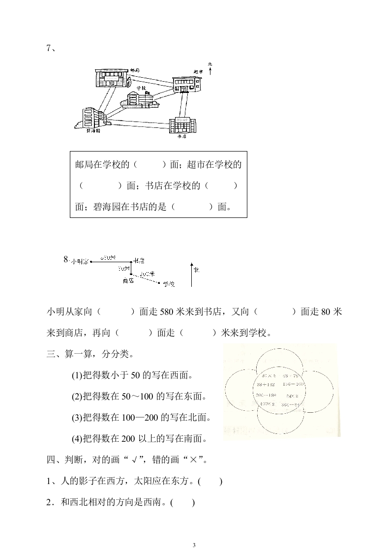 新人教版三年级数学下册第1单元《位置与方向》试题1此内容为付费资源,请付费后查看