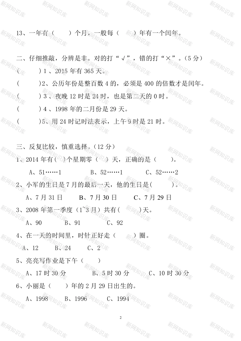 新人教版三年级数学下册第6单测试题此内容为付费资源,请付费后查看