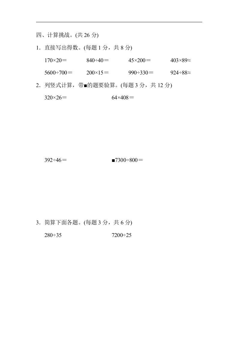 人教版四年级数学上册(含答案)-模块过关(常考、易错题综合能力冲刺检测卷)此内容为付费资源,请付费后查看