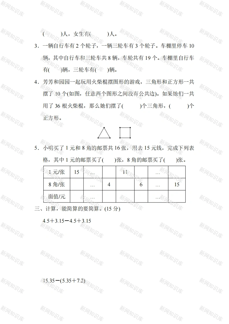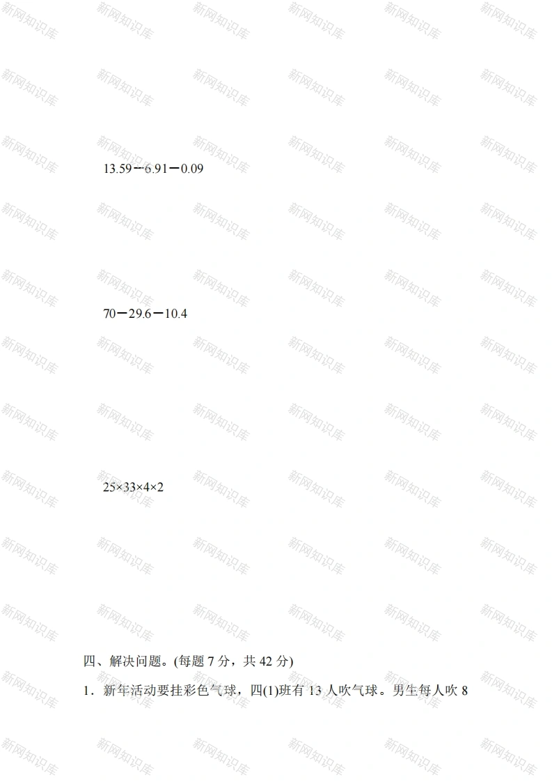人教版四年级数学下册第九单元过关检测卷及答案此内容为付费资源,请付费后查看