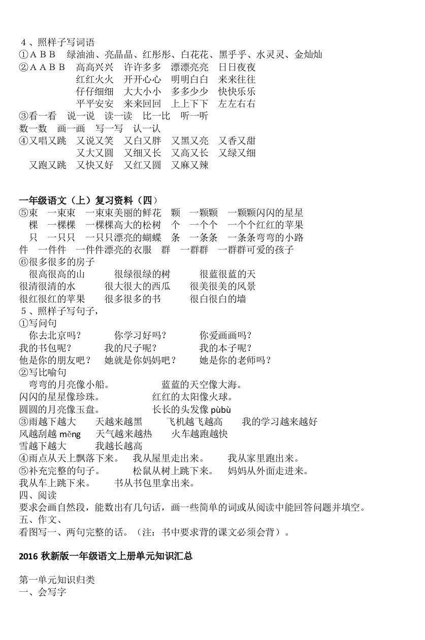 部编版一年级上册语文单元知识整理复习资料此内容为付费资源,请付费后查看