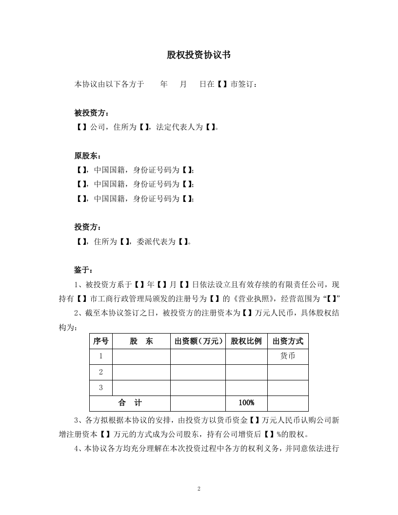 13.股权投资协议书(内资)模版xmtt885个月前发布关注私信0.15MB23页0487 第1页 / 共23页 第2页 / 共23页 第3页 / 共23页 试读已结束,还剩20页,您可下载完整版后进行离线阅读 13.股权投资协议书(内资)模版此内容为付费资源,请付费后查看¥1¥2会员服务免费立即购买您当前未登录!建议登陆后购买,可保存购买订单付费资源© 版权声明文章版权归作者所有,未经允许请勿转载。THE END创业合伙协议 文本预览 关于【】向【】公司进行(溢价增资)之股权投资协议书【】年【】月 查看更多 收起部分 喜欢就支持一下吧点赞7 分享QQ空间微博QQ好友海报分享复制链接收藏