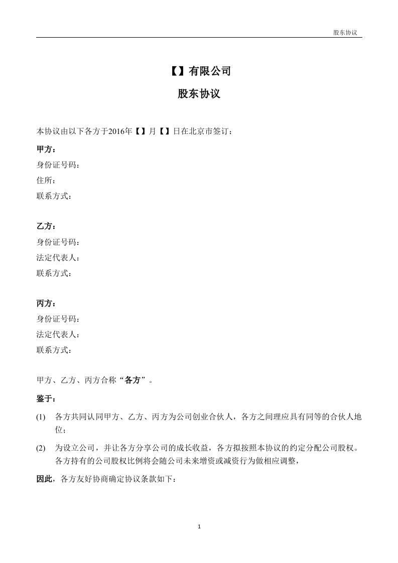 3.法律服务-股东协议xmtt885个月前发布关注私信54.61KB10页0498 第1页 / 共10页 第2页 / 共10页 第3页 / 共10页 试读已结束,还剩7页,您可下载完整版后进行离线阅读 3.法律服务-股东协议此内容为付费资源,请付费后查看¥1¥2会员服务免费立即购买您当前未登录!建议登陆后购买,可保存购买订单付费资源© 版权声明文章版权归作者所有,未经允许请勿转载。THE END创业合伙协议 文本预览 股东协议【】有限公司之股东协议2016年【】月【】日 查看更多 收起部分 喜欢就支持一下吧点赞8 分享QQ空间微博QQ好友海报分享复制链接收藏