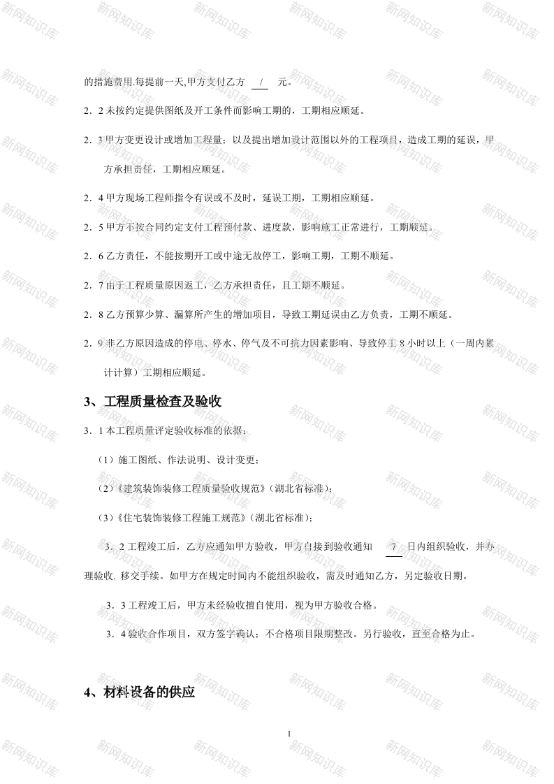 装饰装修合同书发包方(甲方):承包方(乙方):按照《中华人民共和国合同法》、建设部《建筑装饰装修管理规定》和《家庭居室装饰管理》结合本工程实际情况,遵守平等、自愿、公平和诚实信用原则,经双方协商达成如下协议:1、工程概况1.1工程名称:1.2工程地点:1.3承包内容:本合同附件《工程预算书》或《工程项目一览表》列出的项目以及以下内容:详细内容见预算表1.4承包方式:口包工包料:口包工部分包料:口包工不包料:1.5工期:开工日期:200年月日竣工日期:200年月日总日历天数:天1.6工程质量:优1.7合同价款(人民币大写)¥:(含税)2、工期2.1要求比合同约定的工期提前竣工时,应征得乙方同意,并支付乙方因赶工采取0
