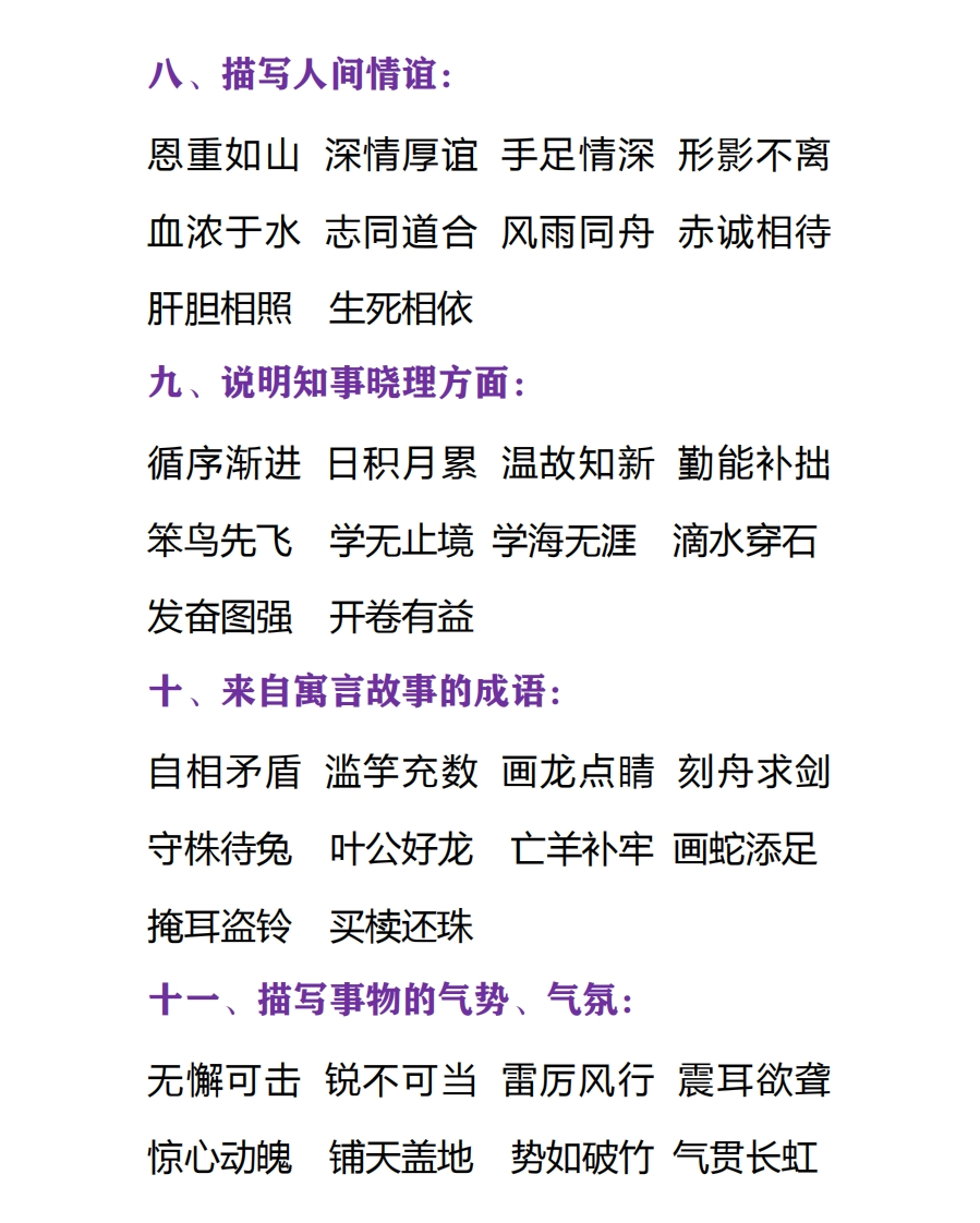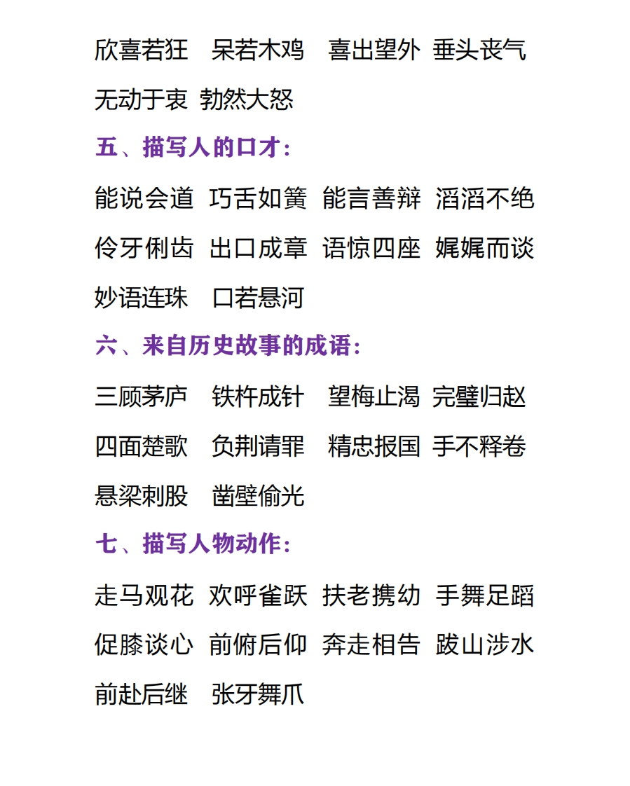 小学语文一年级下册必须掌握的成语分类大全xmtt885个月前发布关注私信0.54MB19页03913 第1页 / 共19页 第2页 / 共19页 第3页 / 共19页 试读已结束,还剩16页,您可下载完整版后进行离线阅读 小学语文一年级下册必须掌握的成语分类大全此内容为付费资源,请付费后查看¥1¥2会员服务免费立即购买您当前未登录!建议登陆后购买,可保存购买订单付费资源© 版权声明文章版权归作者所有,未经允许请勿转载。THE END语文 文本预览 一年级语文下册成语大全一、描写人的品质:平易近人宽宏大度冰清玉洁持之以恒锲而不舍)废寝忘食大义凛然光明磊落不屈不挠鞠躬尽瘁死而后日二、描写人的智慧:料事如神足智多谋融会贯通学贯中西博古通今才华横溢出类拔萃博大精深集思广益举一反三三、描写人物仪态、风貌:憨态可掬文质彬彬风度翩翩相貌堂堂落落大方斗志昂扬意气风发威风凛凛容光焕发神采奕奕四、描写人物神情、情绪:悠然自得眉飞色舞喜笑颜开神采奕奕 查看更多 收起部分 喜欢就支持一下吧点赞13 分享QQ空间微博QQ好友海报分享复制链接收藏
