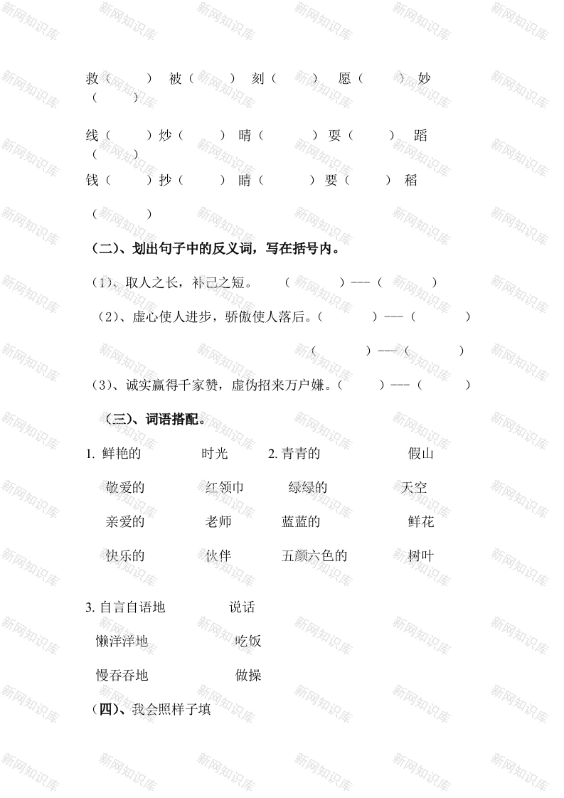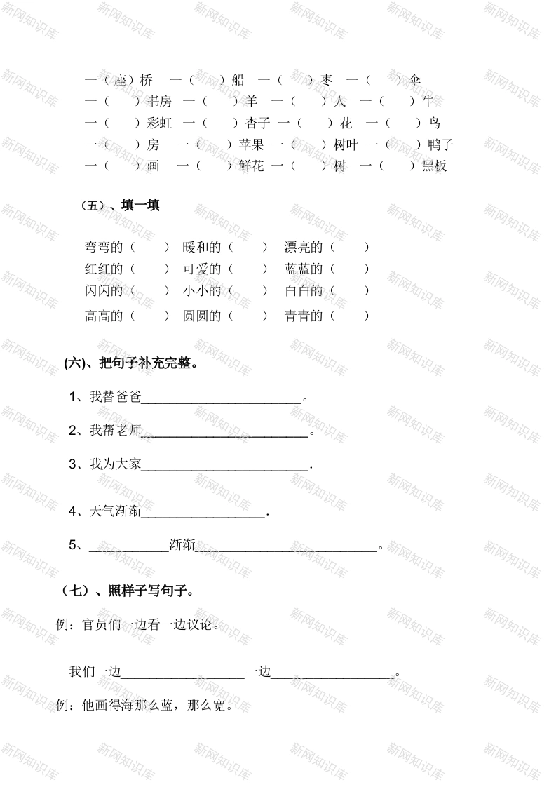 基础知识练习(一)、形近字、音近字组词。白()话()午()气()像()百()活()牛()汽()象()找()吓()沙()跑()请()我()虾()纱(泡()情()跳()坐()问()把()秀()桃()座()1间()吧()季()底()捡()练()远()洒()低()脸()冻()运()晒()乌()申()轻()篇()名()鸟()甲()经()遍()各()起()准()喝()感()滴()赶()谁()渴()喊()摘()球()披()该()原()秒()