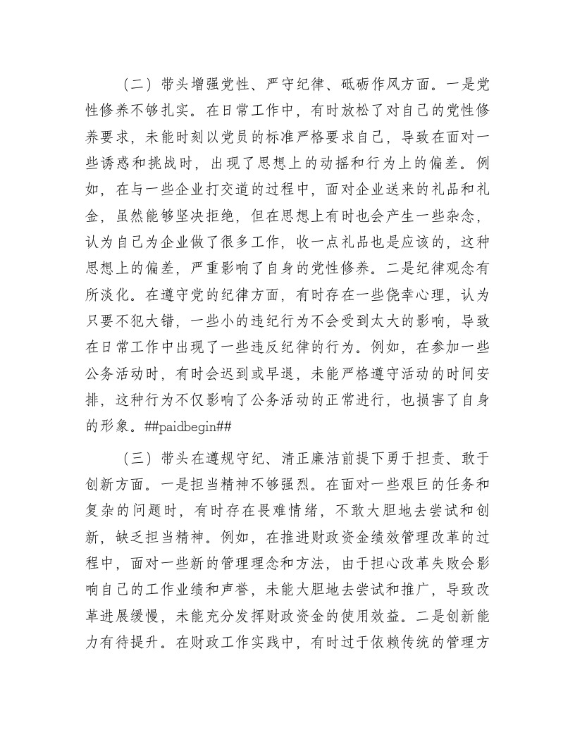 纪检组长2024年专题民主生活会个人对照材料(四个带头)此内容为付费资源,请付费后查看