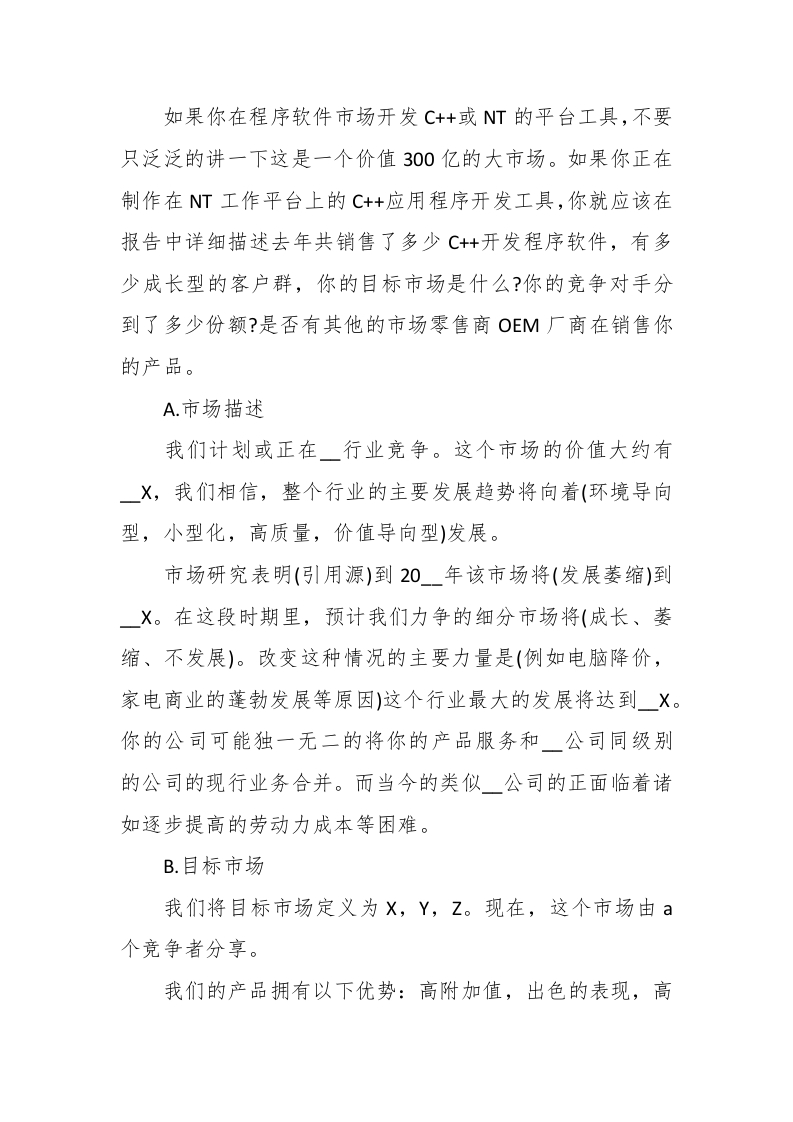 20XX大学生创业项目计划书20XX大学生创业项目计划书(通用18篇)20Xx大学生创业项目计划书篇11概要一个非常简练的计划及商业模型的摘要,介绍你的商业项目,一般500字左右。2公司描述A.公司的宗旨B.公司的名称、公司的结构C.公司经营策略在这里用最简洁的方式,描述你的产品服务;你准备解决什么样的困难;你准备如何解决;你们的公司是否是最合适的人选。D.相对价值增值说明你的产品为消费者提供了什么新的价值E.公司设施需要对计划中的公司设备详细加以描述我公司的生产设备及厂房主要集中于X建立开发生产设备,并努力提高生产和研究能力以便满足日益提高的客户需求。通过大规模的促销攻势提高我公司的产品服务的销售量。增加分销渠道零售网点区域销售销售公司采用电气化直邮式的分类等。录用新的员工以便支持在新的市场计划下可持续的发