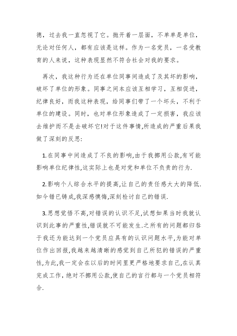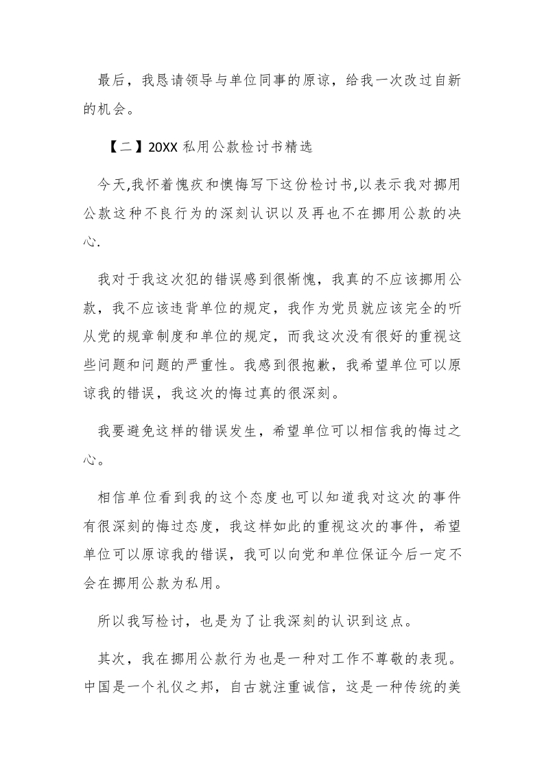 20XX私用公款检讨书精选私自挪用公款是不道德的行为,数量较大会被判刑。以下是小编为大家整理的20XX私用公款检讨书精选,文章内容仅供参考,想要知道更多的资讯,请多多留意查字典范文网!【一】20XX私用公款检讨书精选敬的单位领导:郴paidbegin#我怀着深深懊悔的心情向你递交这份检讨,以深刻反省我私用公款的严重违纪违规行为。回顾我的错误,我擅自将公司公共款项用于私人笔记本购买,严重地危害了公司集体利益,是一种严重的违纪违规行为。面对错误,我感到深深的羞愧,我这样的行为对不起领导,对不起同事,对不起每一个器重过我关心过我的人。现如今,面对错误,我决心彻底改正:第一,我必须彻底改正这种违规行为,并且将私用的这部分钱全额退还给单位。【更多公文素材,微信:dadawk01】第二,我必须就此次错误向领导做出深刻检讨与道歉,并且向您与全体同事表示深深的歉意与悔改。第三,我必须从此次错误当中充分吸取经验教训,并且以最大努力改正错误,避免重蹈覆辙。