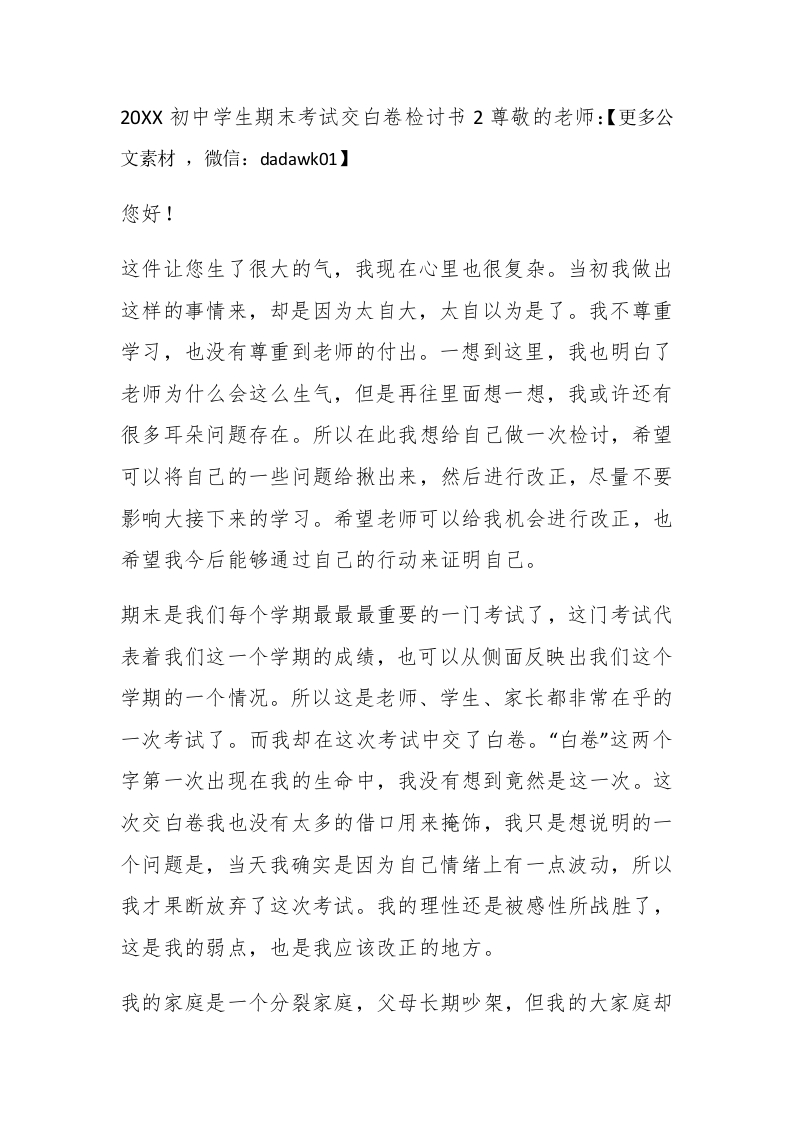 2020初中学生期末考试交白卷检讨书此内容为付费资源,请付费后查看