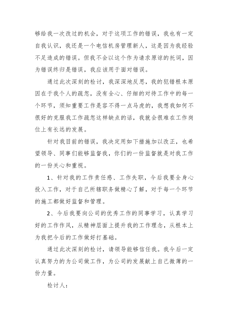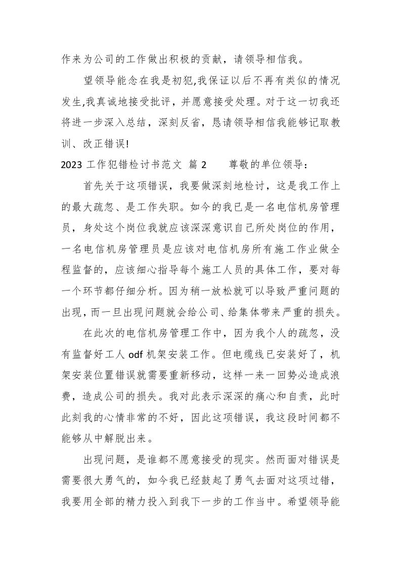 2023工作犯错检讨书范文此内容为付费资源,请付费后查看