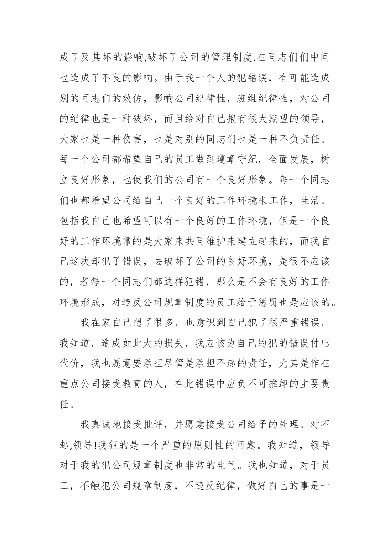 2023工作疏忽检讨书模板范文2023工作疏忽检讨书模板范文(通用18篇)2023工作疏忽检讨书模板范文篇1本人由于疏忽,导致客户非常不满,投诉到d总部去了.公司领导让我好好检讨一下,并且集各路精华总算搞定了,想想就这么交掉了也怪可惜的,不如给往后和我有一样遭遇的人一个样本:今天,我怀着愧疚和懊悔写下这份检讨书,以向大家表示我这种不良行为的深刻认识以及决心早在我上周之前就要和大家说明富邦这客户的机器的具体情况的,结果周一早上我给忘了…这莫过于我的一大损失.同时,大家的关心也令我深深地感动,!我感激的泪水可以添满整个塔里木盆地;我因过分激动而跳跃的心可与唐山大地震相媲美;我浪子回头的决心可赛过女娲补天时的毅力.我坚决保证执行我党的路线、方针、政策,绝不辜负广大领导的期望。所以我相信大家一定会深刻反省我这次无意间所犯的错误,虽然这也许只是一个不假的理由,真实就是真实,事实就是我的工作疏忽,但我还是向往领导能减轻我所犯的错误的深度对不起,这次我犯的是一个严重的原则性的问题.错误已像光天化曰下的凶器说出了一切事实.大家的批评反复教导言犹在耳,严肃认真的表情犹在眼前,我深为震撼,也已经深刻的认识到事已至此的重要性