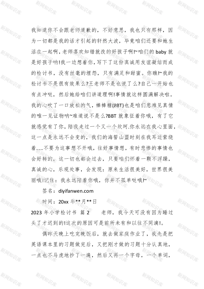 2023年小学检讨书此内容为付费资源,请付费后查看
