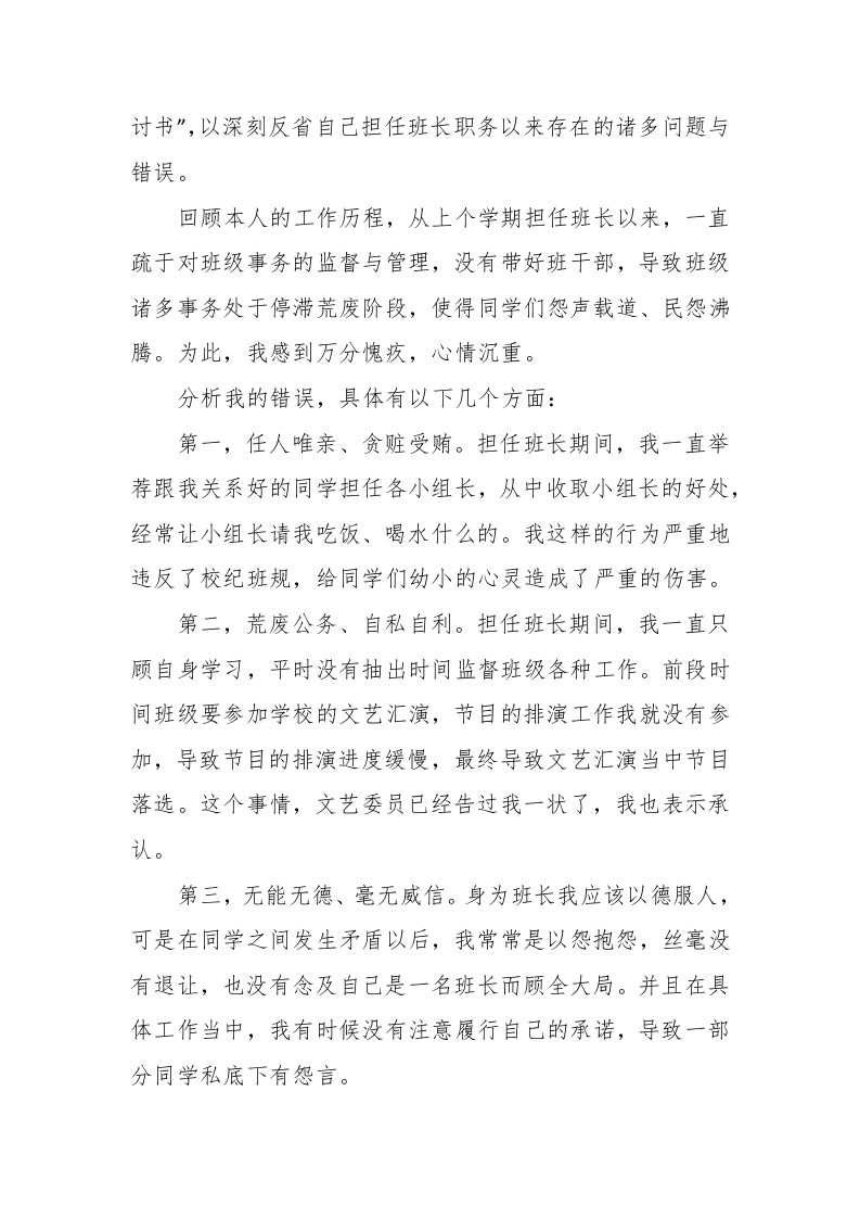 2023年班干部工作失职检讨书此内容为付费资源,请付费后查看