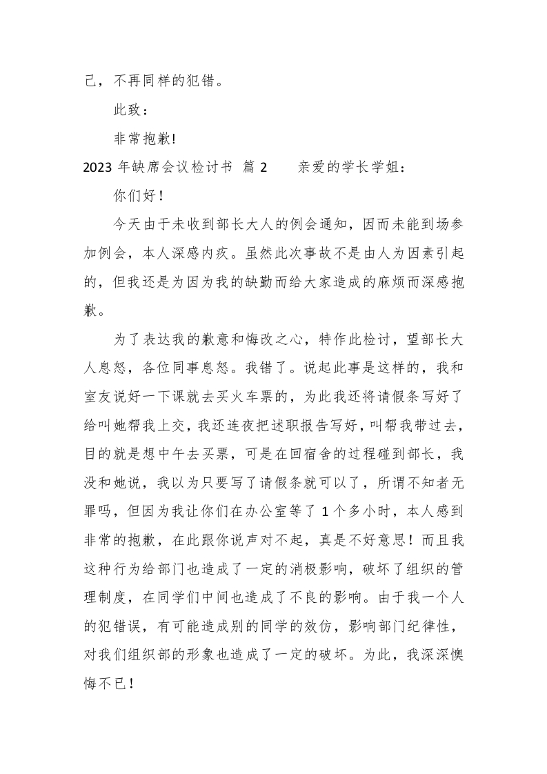 2023年缺席会议检讨书此内容为付费资源,请付费后查看