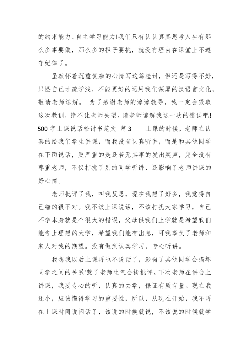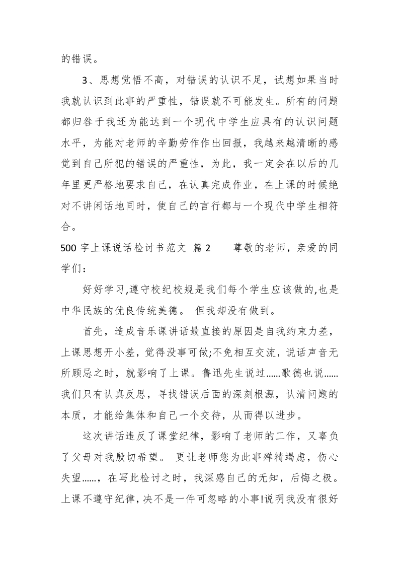 500字上课说话检讨书范文500字上课说话检讨书范文(通用26篇)500字上课说话检讨书范文篇1尊敬的:我在上课的时候讲闲话的行为也是一种对老师的工作不尊敬的表现。中国是一个礼仪之邦,自古就讲究尊师重道,这是一种传统的美德,过去我一直忽视了它。抛开着一层面,不单单是老师,无论对任何人,我们都应该尊重他,尊重他的劳动,他的劳动成果。我这样做,直接造成了不尊重老师,不尊重他人,不尊重他人劳动的恶劣影响。作为一名当代中学生,一名正在接受教育的人来说,这种表现显然不符合社会对我们的要求。再次,我这种行为还在学校同学间造成了及其坏的影响,破坏了学校的形象。同学之间本应该互相学习,互相促进,纪律良好,而我这种表现,给同学们带了一个坏头,不利于学校的学风建设。同时,也对学校形象造成了一定损害,我们应该去维护而不是去破坏它!对于这件事情,所造成的严重后果我做了深刻的反思:1、在同学们中间造成了不良的影响,由于我在上课的时候讲闲话,有可能影响班级纪律性,让其他同学也讲话,都没有好好听课,这实际上也是对别的同学的父母的不负责。2、影响个人综合水平的提高,使自身在本能提高的条件下为能提高。如今错已铸成,我深感懊悔,深刻检讨自己