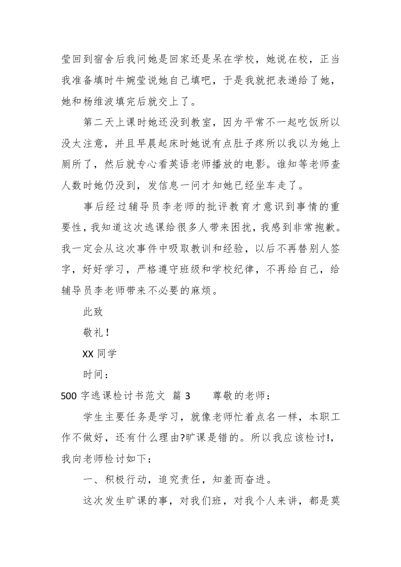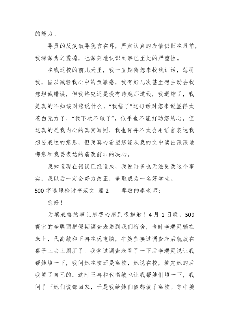 500字逃课检讨书范文500字逃课检讨书范文(通用25篇)500字逃课检讨书范文篇1敬爱的x导员:对不起,我知道错了,我知道逃课是一种很不负责任的表现,作为一名学生,连最基本的上课都没做好,我简直愧为大学生,我对于自己的行为感到不耻。早在我进入大学之初,我就坚定了好好学习,努力成才的决心,但是我却辜负了老师、家长以及同学的关心,我逃课了。虽然我逃课是由于许久不曾回家,又因“五一”放假三天而我回家在路途上就需要消耗两天的时间,故而我逃了一天的课,但我真的不是存心不想上课的,我错过了老师为我们精心准备的无比生动的课,错过了一次老师呕心沥血给我们制作的知识大餐,这莫过于人生的一大损失。逃课后,我满怀愧疚之情,在家里呆了两天也是惴惴不安的,一方面觉得对不住老师的谆谆教诲,另一方面还要对父母谎称放了4天假而无比的羞愧,这4天的“假”我是在良心的一次次谴责中度过的,我觉得自己“上对不起天,下对不起地,中间对不起自己的良心”。对不起,导员!这次我犯的是一个严重的原则性错误。错误已经发生,我却不知如何挽回,只好告诫自己要努力把握好今后的每一分钟,时时刻刻铭记导员的教导,努力学习,争创辉煌。最起码也要学会立足社会的知识,掌握自力更生