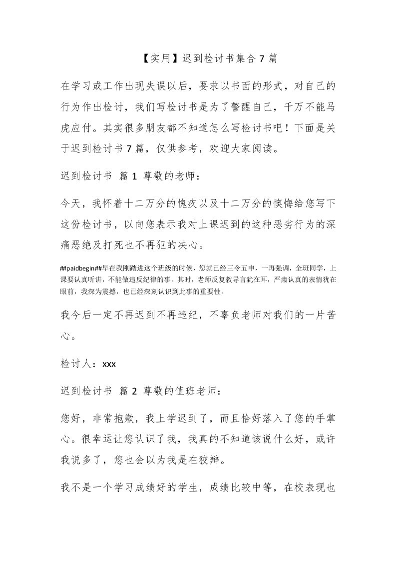 【实用】迟到检讨书集合7篇此内容为付费资源,请付费后查看