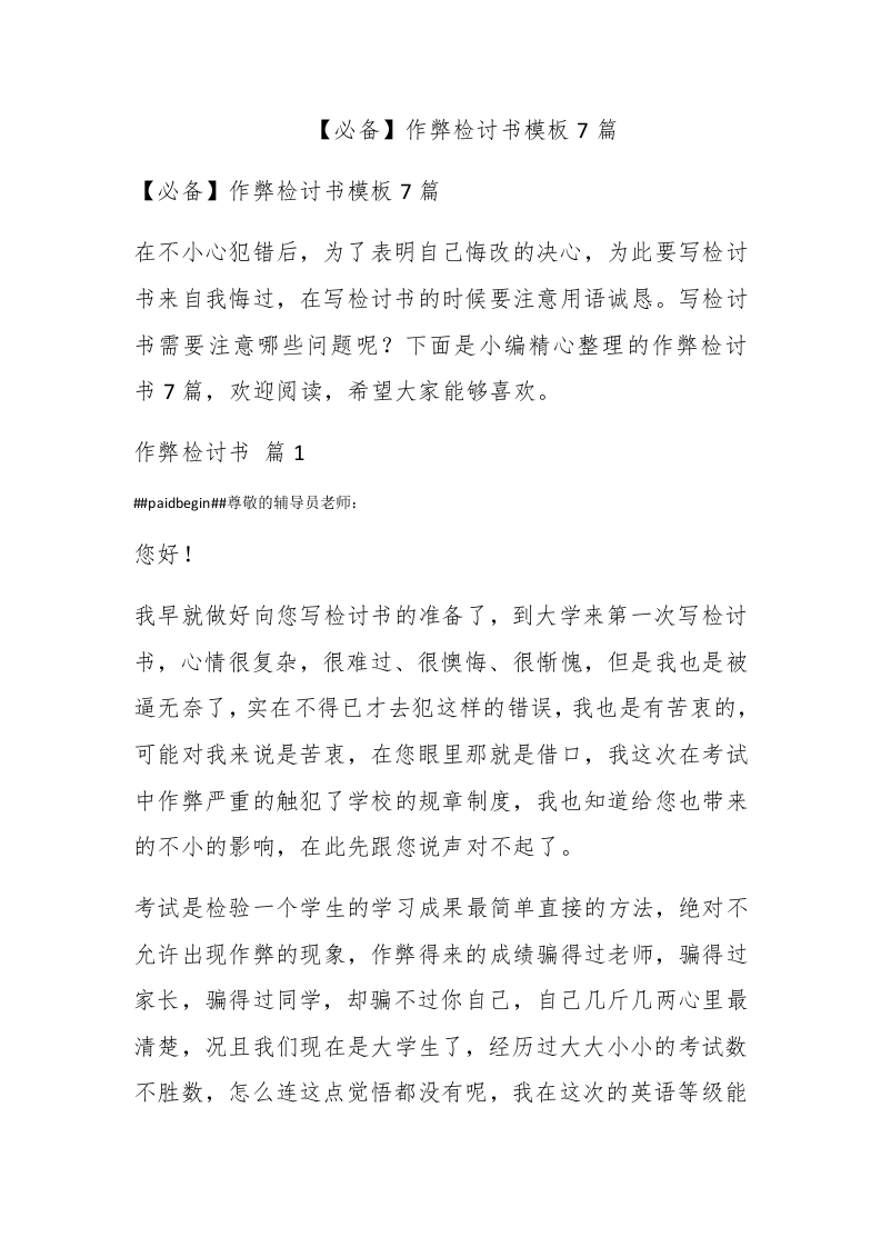 【必备】作弊检讨书模板7篇此内容为付费资源,请付费后查看