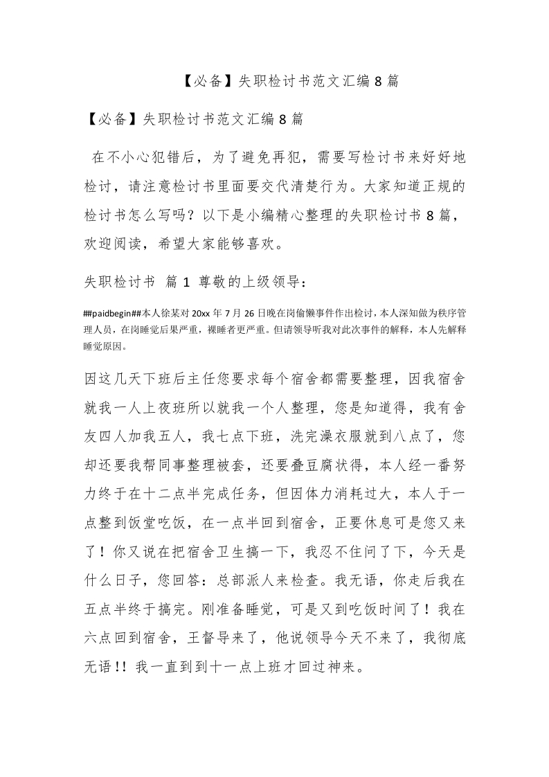 【必备】失职检讨书范文汇编8篇此内容为付费资源,请付费后查看