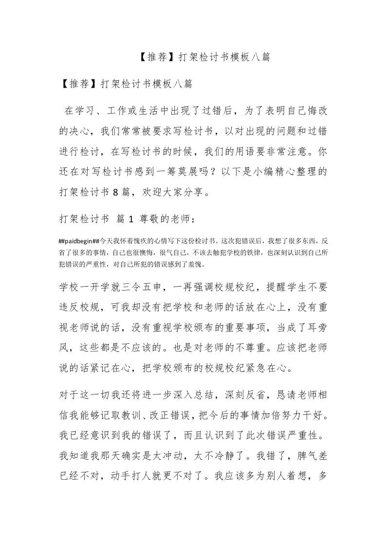 【推荐】打架检讨书模板八篇此内容为付费资源,请付费后查看