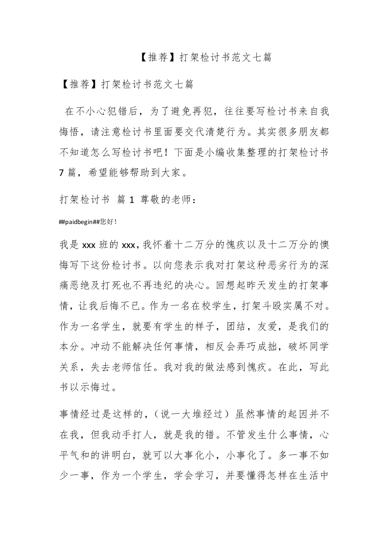 【推荐】打架检讨书范文七篇此内容为付费资源,请付费后查看