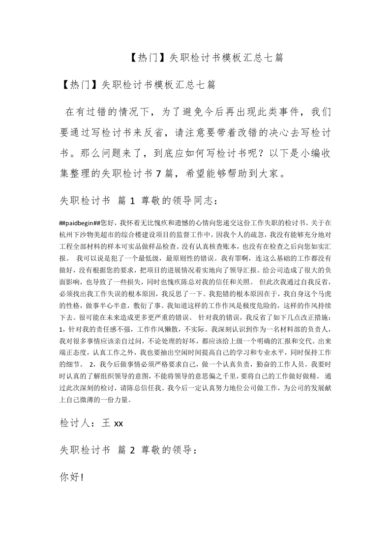 【热门】失职检讨书模板汇总七篇此内容为付费资源,请付费后查看