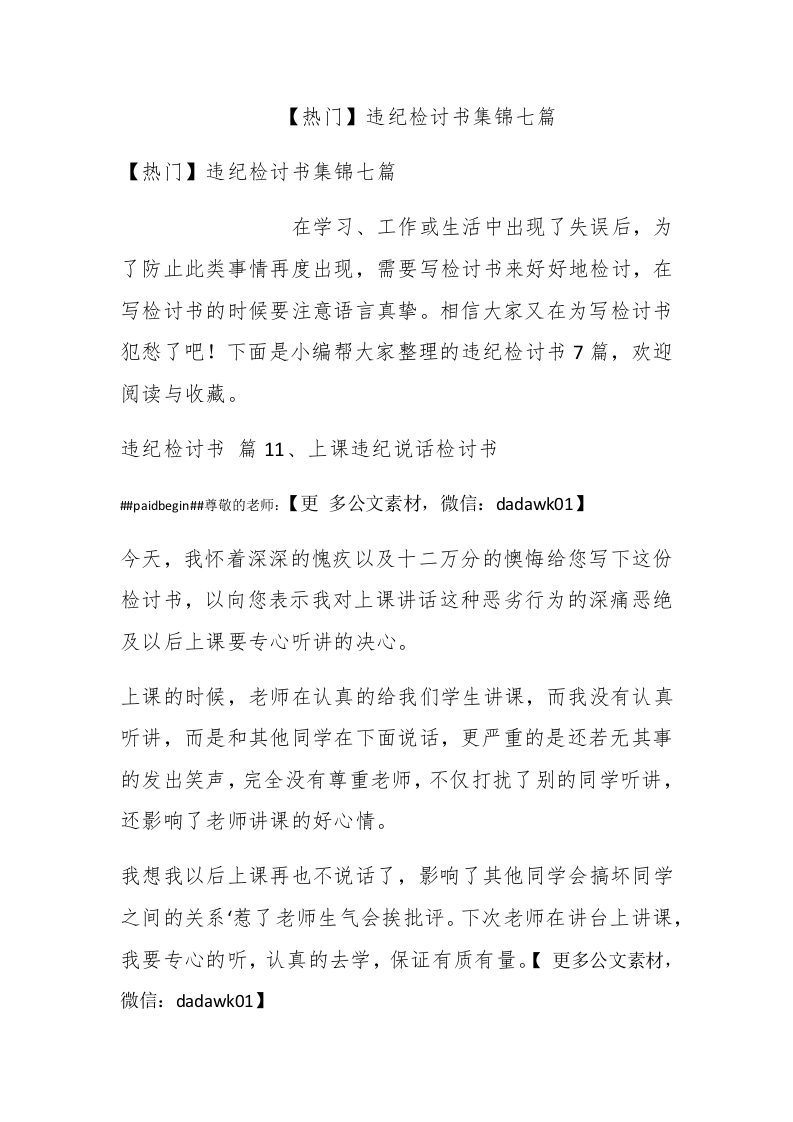 【热门】违纪检讨书集锦七篇此内容为付费资源,请付费后查看