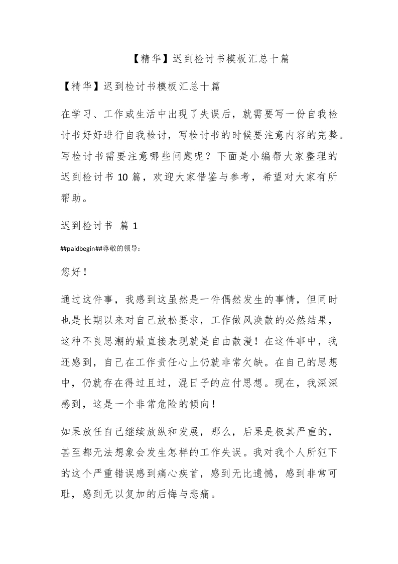 【精华】迟到检讨书模板汇总十篇此内容为付费资源,请付费后查看